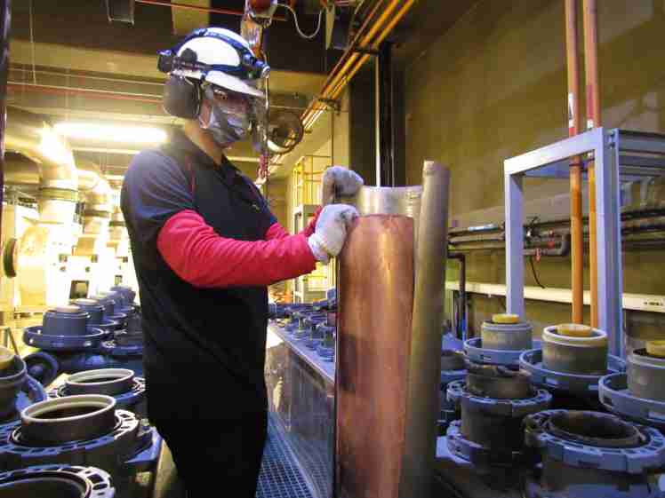 壹号平台将废弃物转化成有效的工业或民生原物料,,,,图为废铜液淬炼后再制成纯度极高的铜管